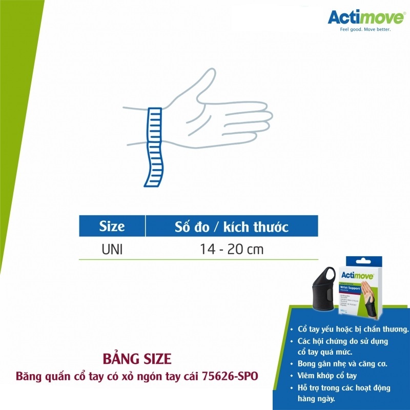| Tên sản phẩm | Băng quấn cổ tay có xỏ ngón cái Actimove 75626-SPO |