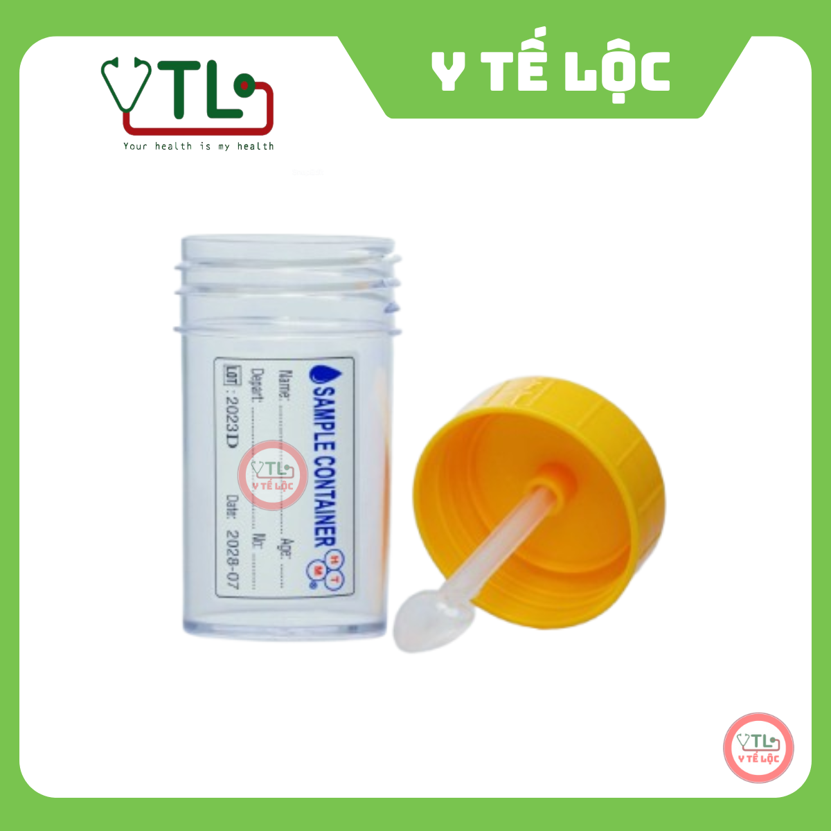 Lọ đựng mẫu phân có muỗng, có bảo quản Hồng Thiện Mỹ