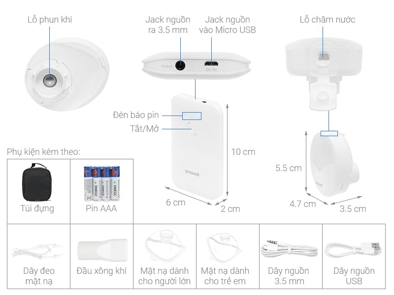 👨👩👧 Phù hợp cho cả người lớn và trẻ em trong điều trị viêm mũi, viêm họng, viêm phế quản, COPD, hen suyễn,…