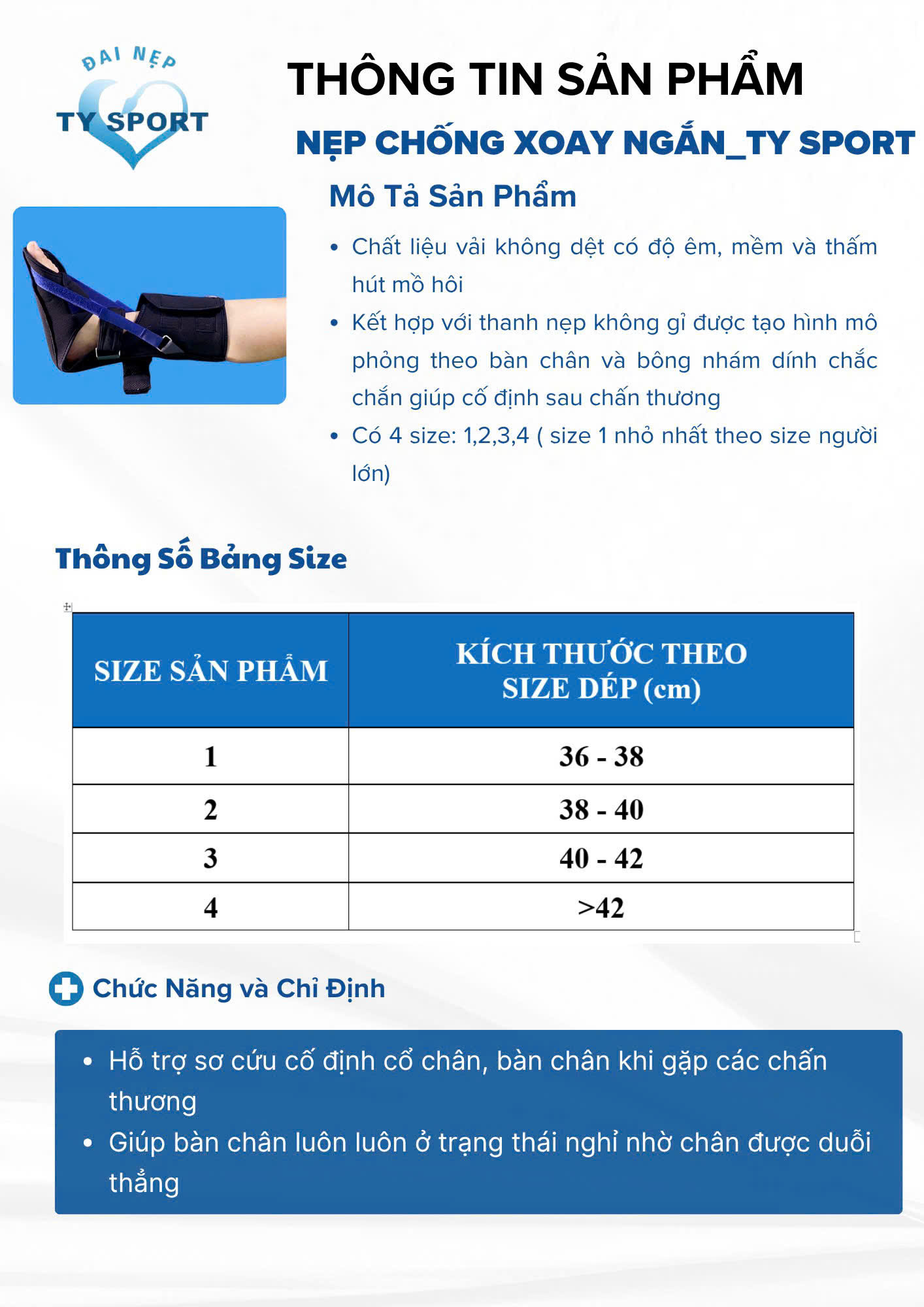 • Hỗ trợ cố định sau chấn thương khớp cổ chân, bàn chân
